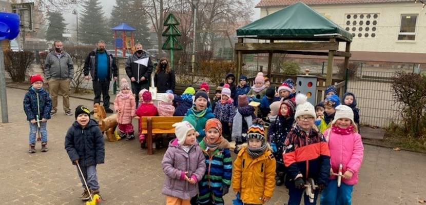 Die zweite Überraschung für unsere Kita erfolgte am Mittwoch. Voller Spannung warteten die Kinder der Kita „Sonnenschein“ am Eingangstor der Kita. Ein Mitarbeiter und drei liebe Helfer der AFU brachten die Augen der Kinder zum Leuchten. In einer Maßnahme der AFU stellten sie unter anderem aus Holz eine Tankstelle, eine Ampel, einen Tisch mit Bänken und Steckenpferde kostenlos für unsere Kitakinder her. Die Begeisterung der Kinder über die neuen Spielzeuge war wundervoll.