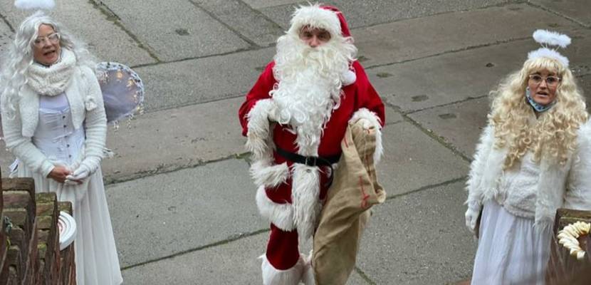 So klingelten und klopften der Weihnachtsmann und seine zwei Weihnachtsengel an den Türen vieler Kinder und überreichten entsprechend aller Hygieneregeln aus dem großen Sack Geschenke für die Kleinen.