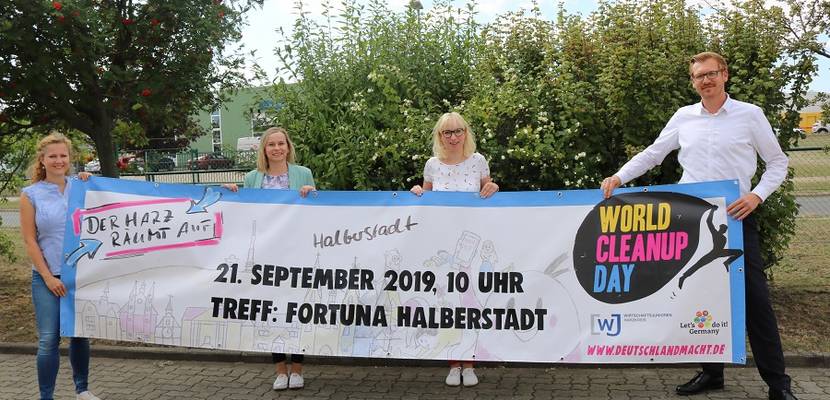 Bildunterschrift: Mit dem Banner zur Aktion „Cleanup Day 2019“ rufen Dr. Judith