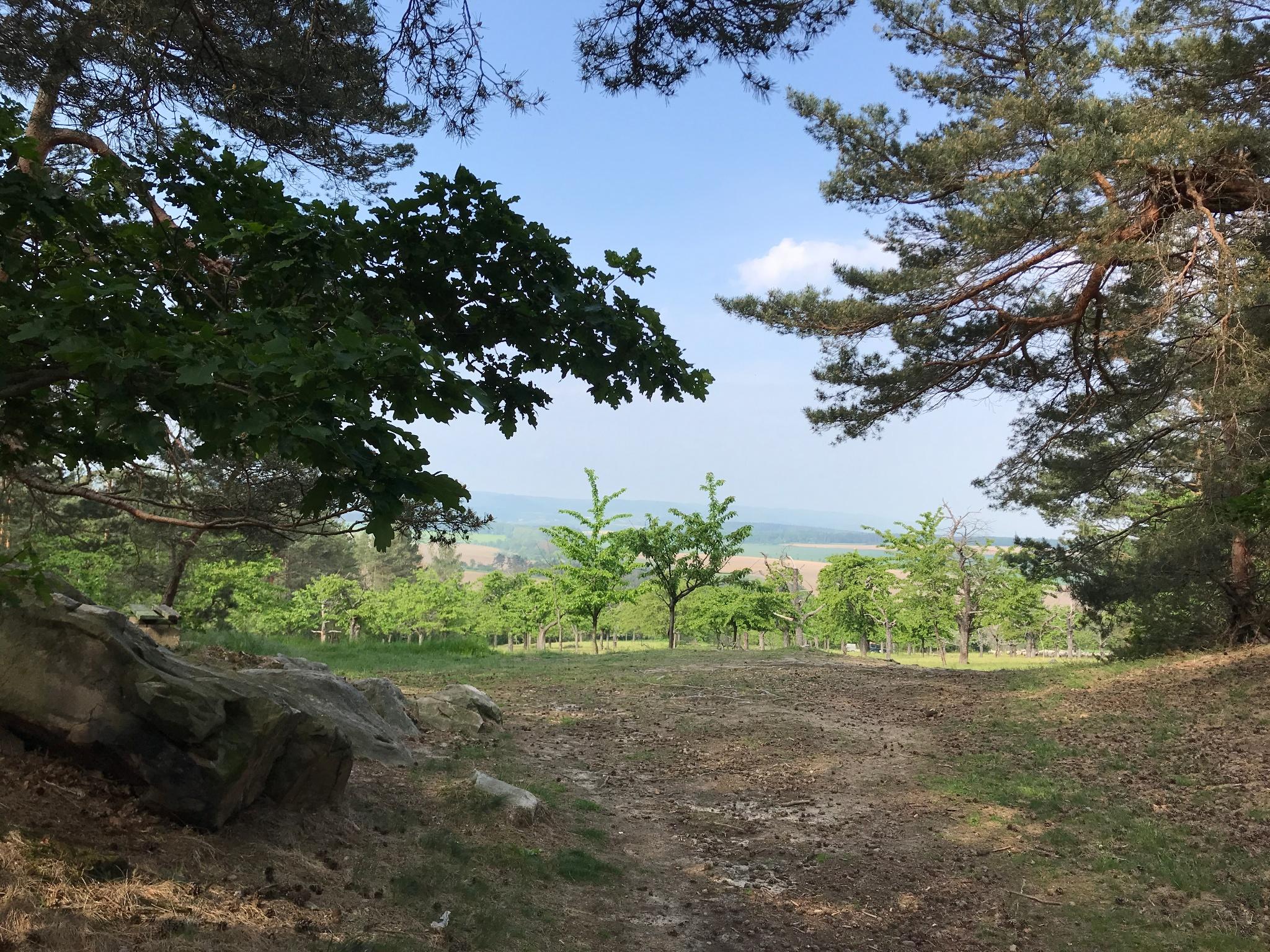 Die große Obstplantage wurde später teilweise mit Kiefern bepflanzt. An der Nordwestseite befindet sich der Siemensstein.