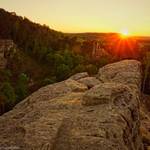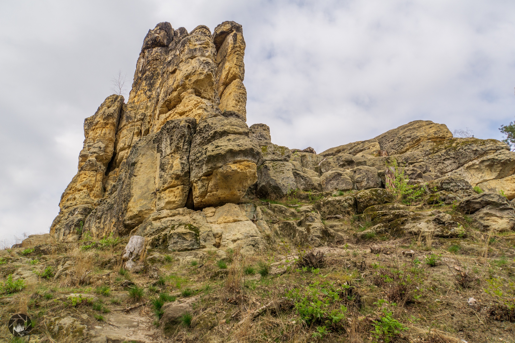 Wenn Sie den Weg weiter geradeaus wandern, liegt vor Ihnen die Teufelskanzel dort biegen Sie rechts ab und vor Ihnen liegt der Fünf Finger Felsen. Dahinter, ein Stück weiter, gelangen wir zum Klusfelsen. Stempelstelle