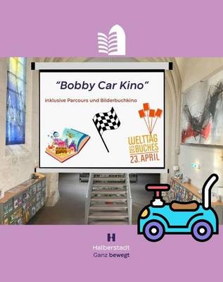 das „Bobby Car Kino“. Was die Großen nostalgisch schwelgen lässt, können die Kleinen jetzt persönlich erleben. Das „Autokino“ beginnt mit einem Parcours, um das Fahrgeschick zu beweisen. Anschließend gibt es gemeinsam ein Bilderbuchkino. Gesessen wird natürlich auf den (Rutsch-)Fahrzeugen.