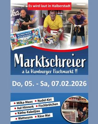 Die offizielle Eröffnung der Marktschreier-Tage findet am Donnerstag, dem 5. Februar 2026, um 11.00 Uhr statt. Die Eröffnung erfolgt mit dem obligatorischen Fassanstich und Freibier sowie einem originalen Marktschreier-Frühstück für alle Anwesenden.
