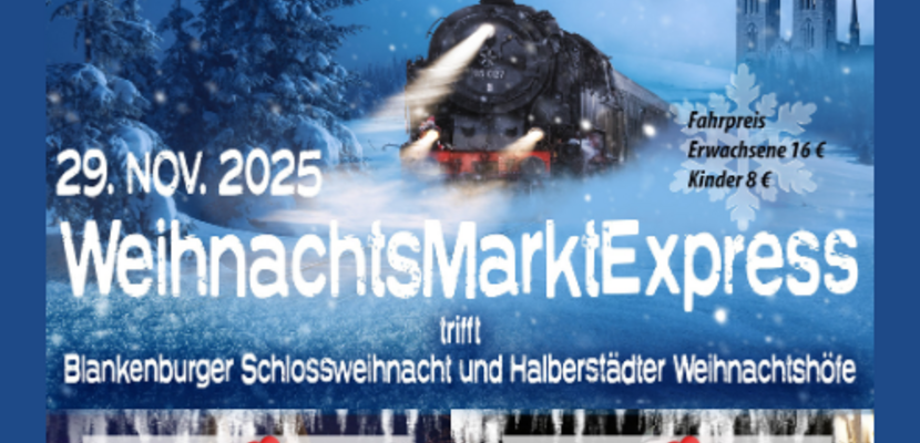 29.11.2025 ab 15:25 UhrFahrkartenverkauf ab 13:00 Uhr im Bahnhof Blankenburg (Harz)