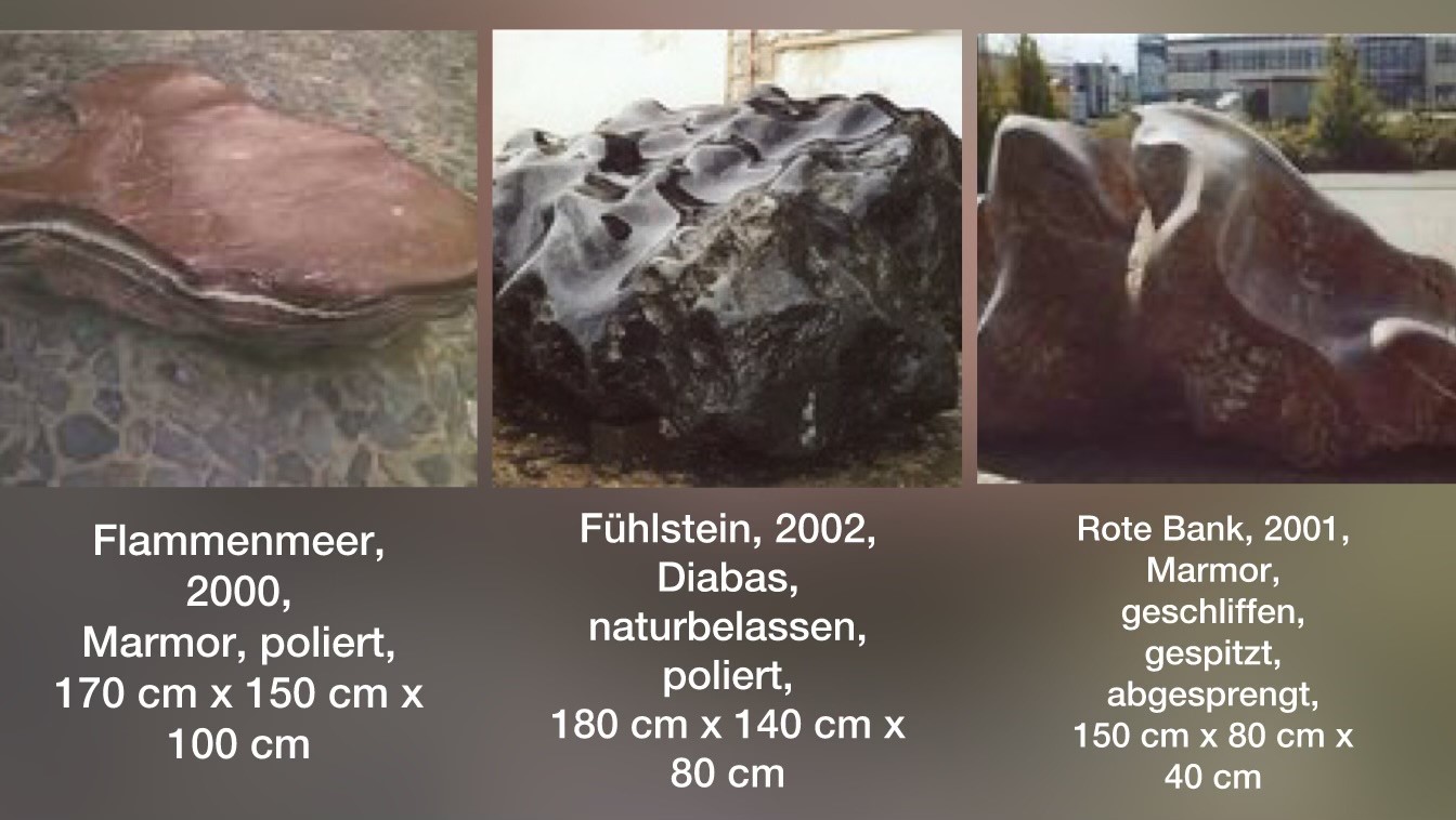 Was wären wir ohne den Stein? Die Steinbrüche sind für mich die wichtigste Inspirationsquelle. Meine Arbeiten sind der Versuch, die positive Wechselwirkung zwischen Natur und Mensch dazustellen. Dabei ist es mir wichtig, die verschiedenen Oberflächenstrukturen in einen harmonischen zu Einklang bringen. Im Ergebnis durchdringen sich die rauen Formen der Natur und die Veränderung durch menschliche Einwirkungen.